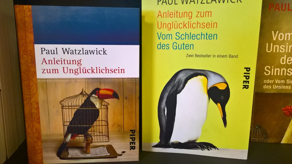 Also nach der Bilderlogik verwandelt sich der Tucca nach dem er die Anleitung des Unglücklichseins gelesen hat und über das Schlechte vom Guten nachgedacht hat in einen Pinguin. Und davon scheint er auch nicht sonderlich begeistert zu sein…
